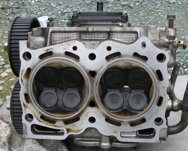 ブローした右ヘッド。オイル上がりによりベッタリです。