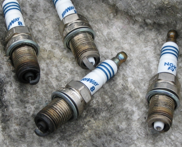 左バンクのプラグ、真っ白です。やっぱ排気温度が高い?